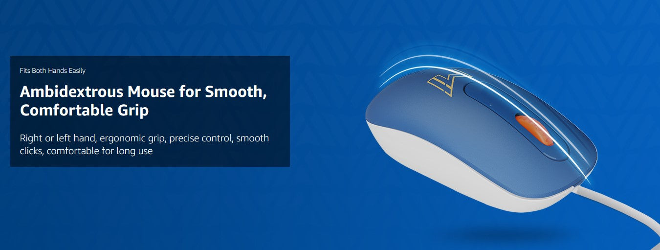 - Ambidextrous wired USB mouse