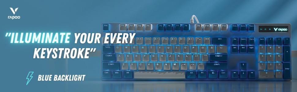 Featuring tactile brown switches, the Rapoo V500PRO Mechanical Keyboard strikes a perfect balance between typing comfort and gaming responsiveness. The tactile feedback helps increase accuracy, whether you are typing long documents or executing commands in competitive games. With blue LED lighting and customizable effects, this keyboard adds visual flair to your setup while improving key visibility in low-light conditions.