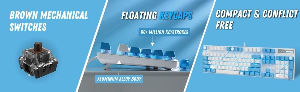 - Full-size mechanical keyboard with brown switches