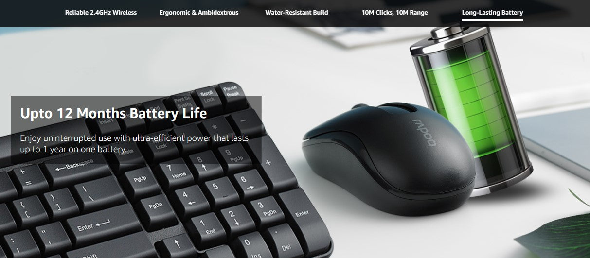 Long Battery Life: Enjoy up to 12 months of use thanks to Rapoo’s energy-saving technology and an on/off switch.