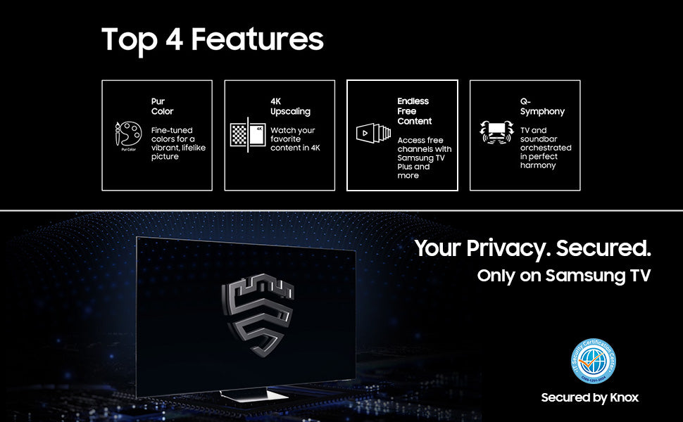 This Samsung TV ensures the privacy of your data, thanks to the Samsung Knox Security feature. It uses multiple layers of software and hardware protection to keep your passwords safe and also blocks unauthorised access to malicious apps or phishing sites. This Samsung TV also comes with regular updates to keep your data safe.
