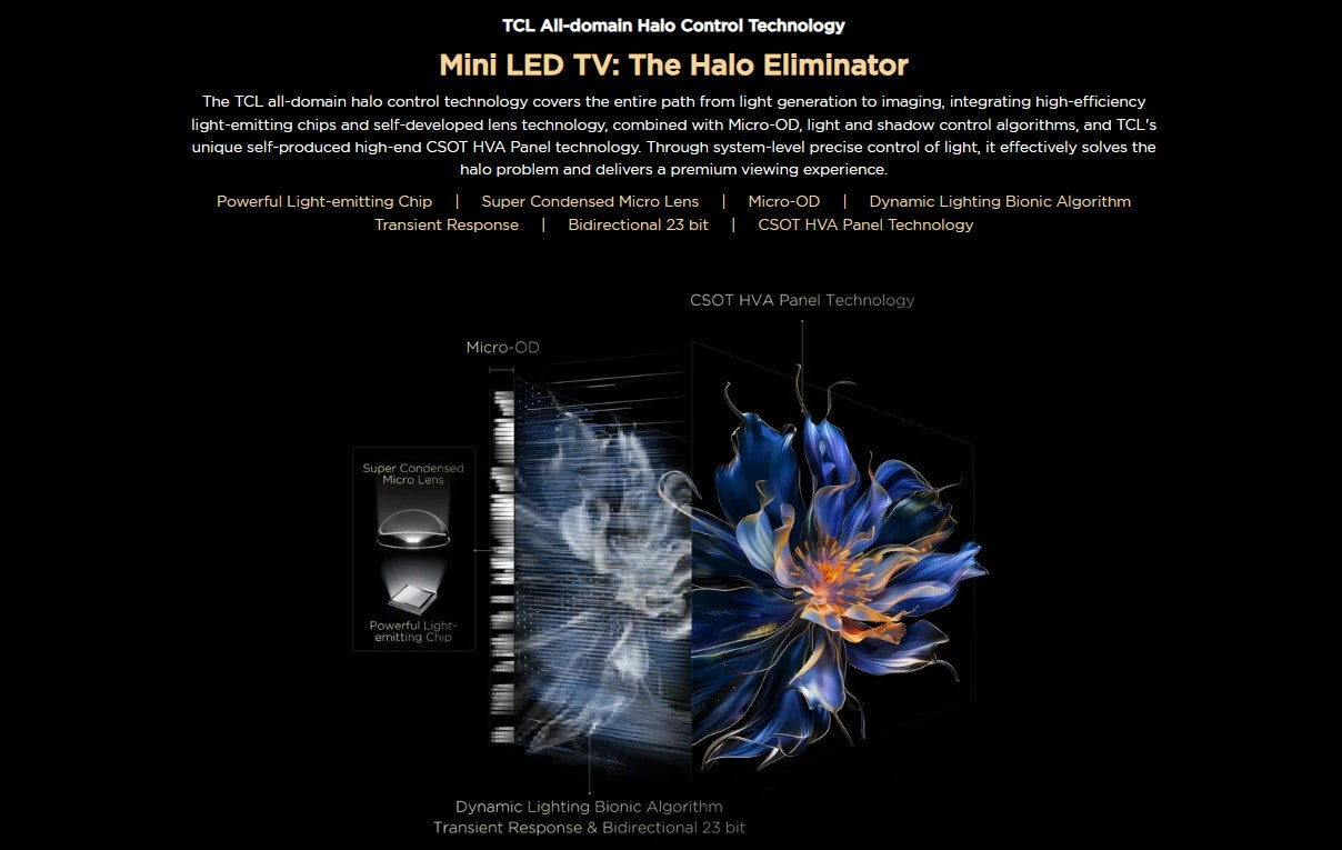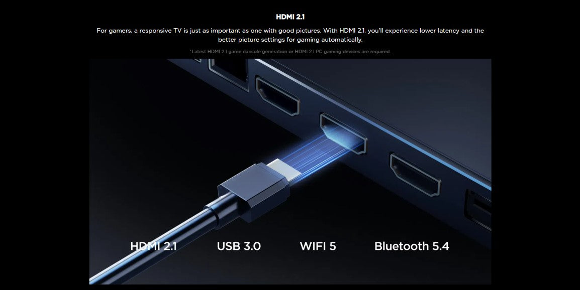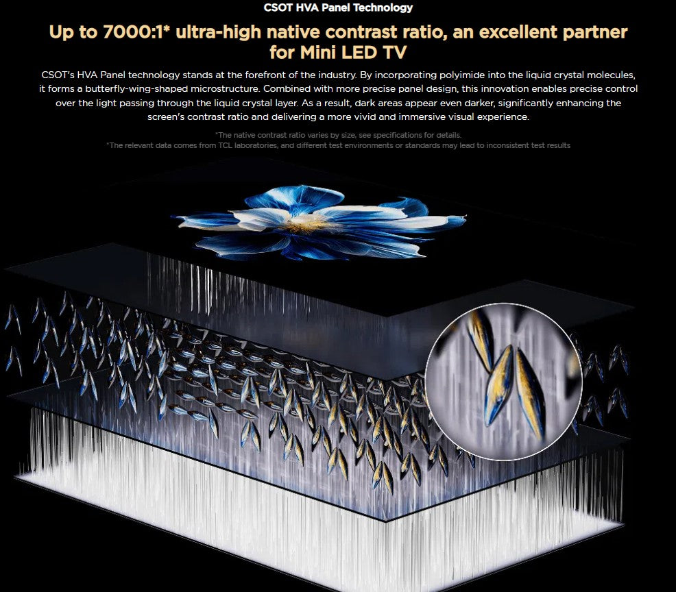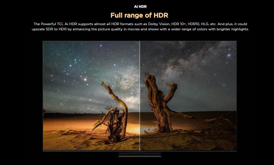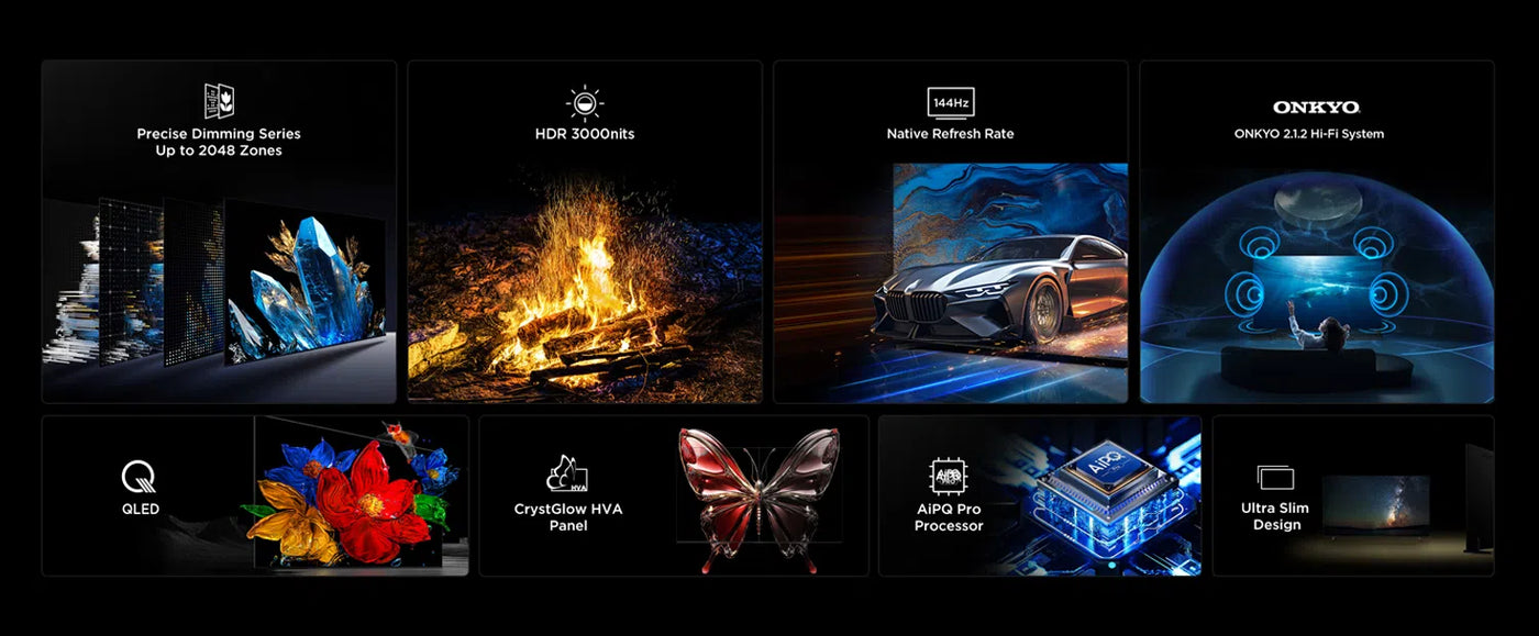 Featuring a CrystGlow HVA panel with ultra-high native contrast and precise dimming technology with thousands of zones, this TV ensures deep blacks and superb picture detail even in dark scenes. HDR support including Dolby Vision, HDR10+ and HLG enhances dynamic range for more striking visuals.