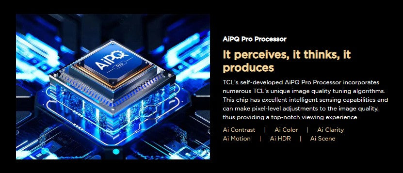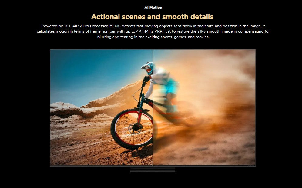With a native 144Hz refresh rate, every motion looks smooth and clear — ideal for fast-paced sports and gaming. The powerful AiPQ Pro processor intelligently optimizes color, clarity, motion and contrast frame by frame for exceptional overall performance.