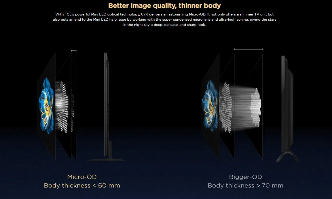 TCL C7K Premium QD-MiniLED TV 115″ brings brilliant cinema-like visuals to your living room with advanced QD-MiniLED technology, ultra-high contrast, and peak HDR 3000 nits brightness that delivers lifelike clarity and depth for movies, sports, and games.