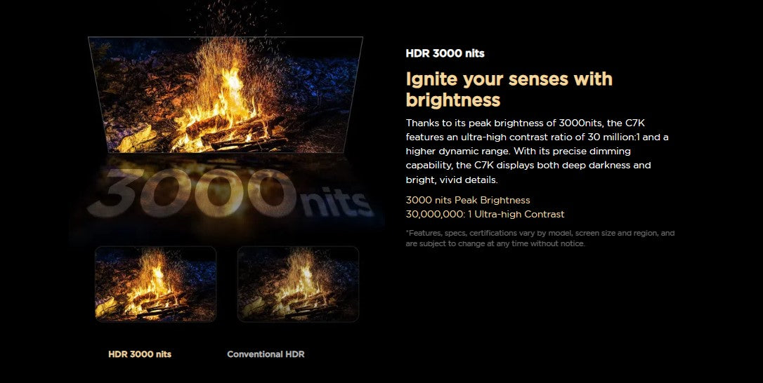 - HDR 3000 nits peak brightness