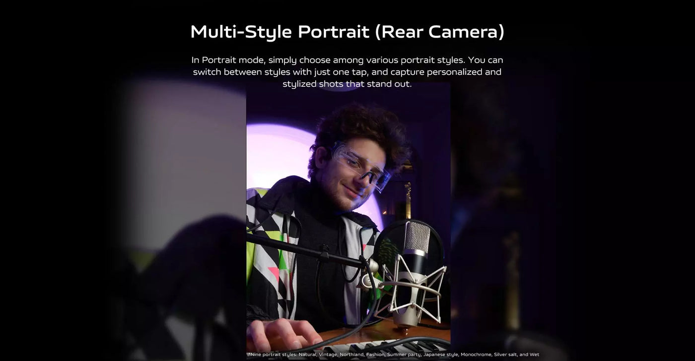 In Portrait mode, simply choose among various portrait styles. You can switch between styles with just one tap, and capture personalized and stylized shots that stand out.
