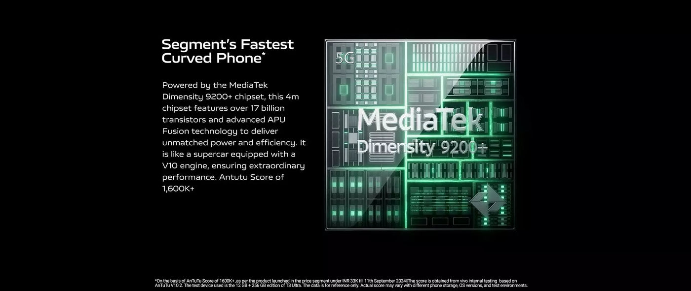 Powered by the MediaTek Dimensity 9200+ chipset, this 4 m chipset features over 17 billion transistors and advanced APU Fusion technology to deliver unmatched power and efficiency. It is like a supercar equipped with a V10 engine, ensuring extraordinary performance. Antutu Score of 1,600K+.