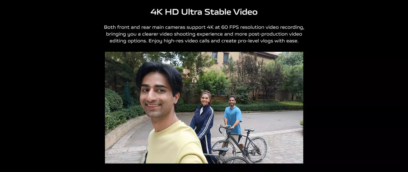 Both front and rear main cameras support 4K at 60 FPS resolution video recording, bringing you a clearer video shooting experience and more post-production video editing options. Enjoy high-res video calls and create pro-level vlogs with ease.