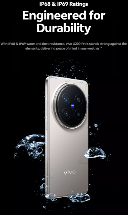 - With IP68 & IP69 water and dust resistance, X200 Pro stands strong against the elements, delivering peace of mind in any weather.