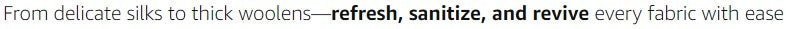 Product Benefits | Fabric Refreshening, Remove Wrinkle, Sanitize, Soften |